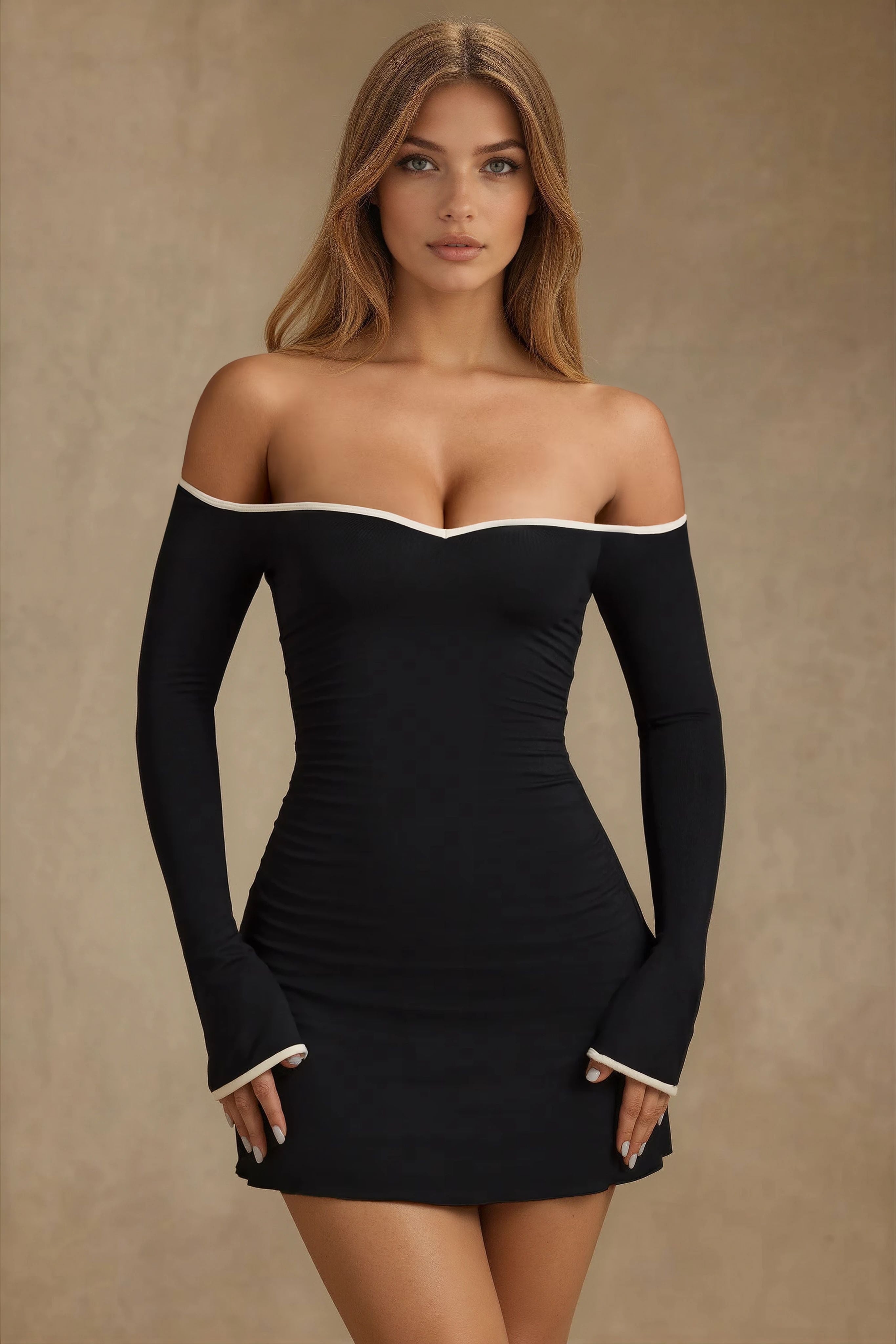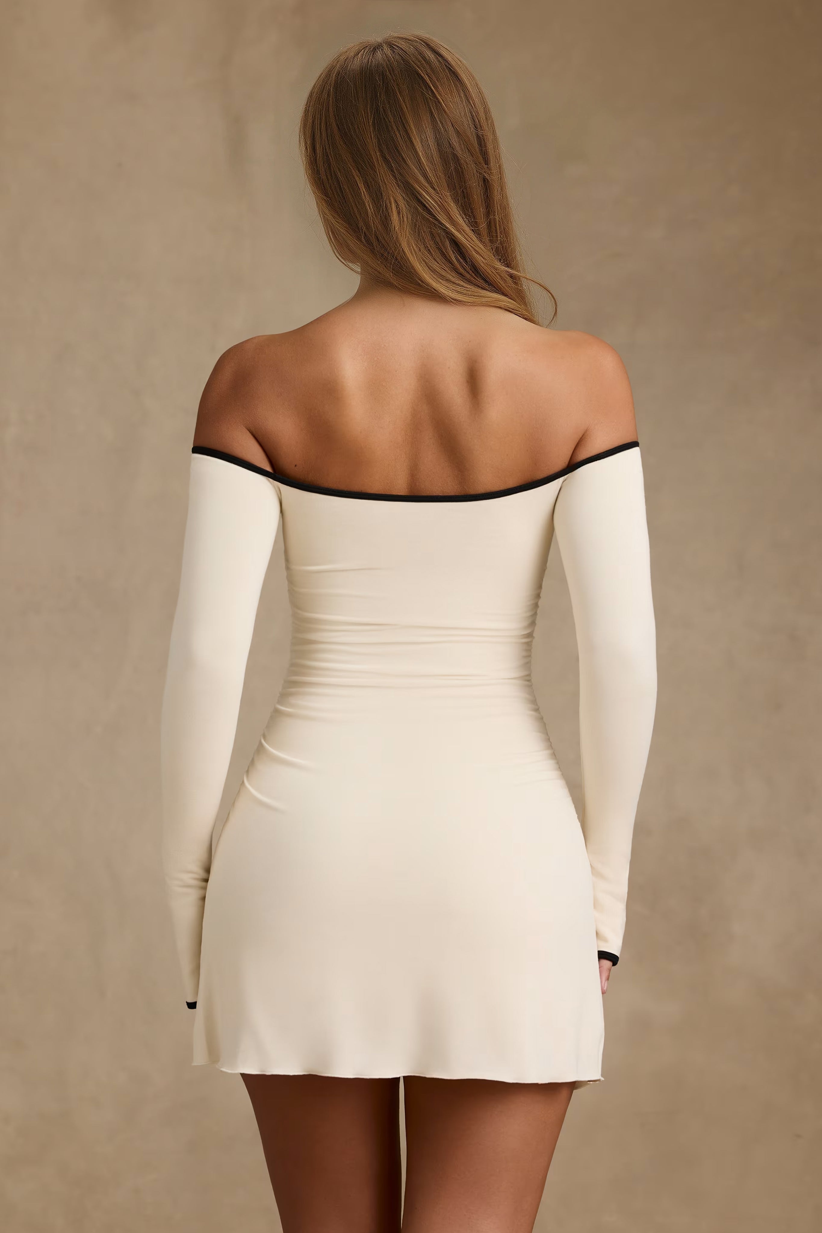 A sweet silhouette you’ll reach for time and time again, the Laura mini dress is cut to a universally flattering A-line silhouette that skims your curves. It’s framed with a contrast sweetheart neckline, flared off-shoulder long sleeves and crafted from buttery soft, stretchy and breathable jersey made with TENCEL™ Modal fibres, derived from controlled or certified wood sources.