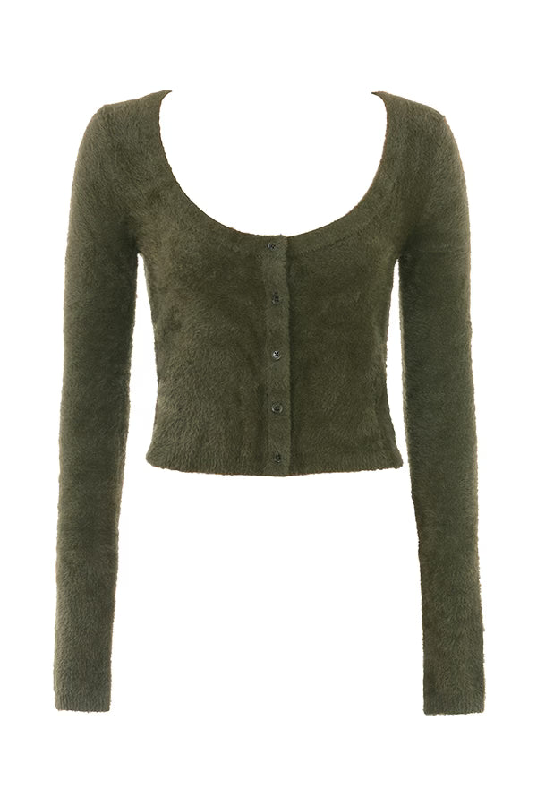 Soft Fluffy Knit Button-Up Cardigan