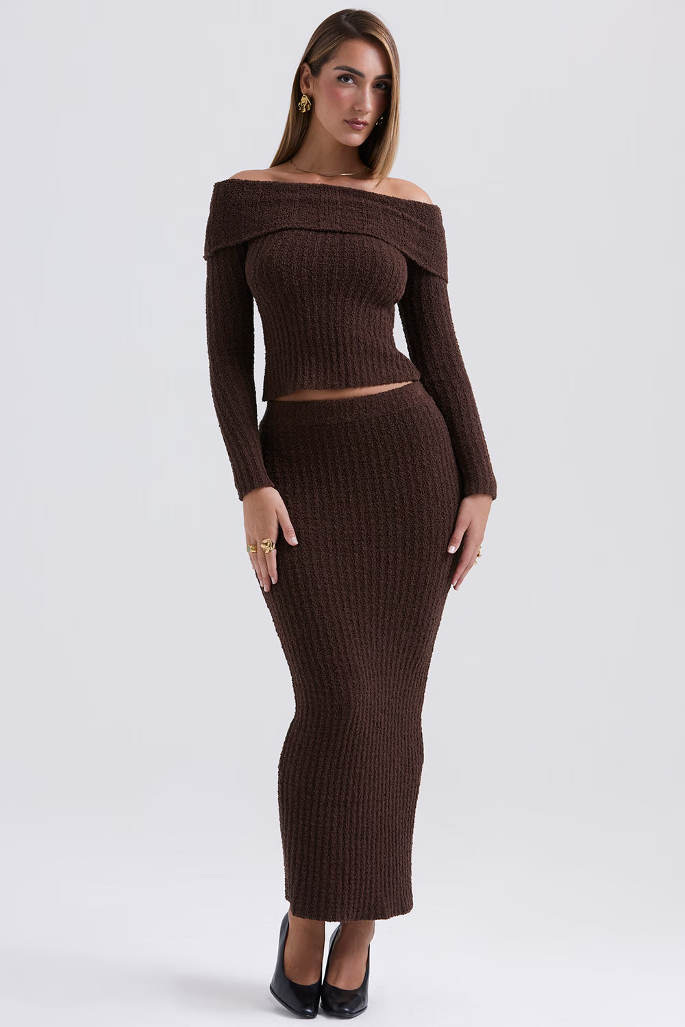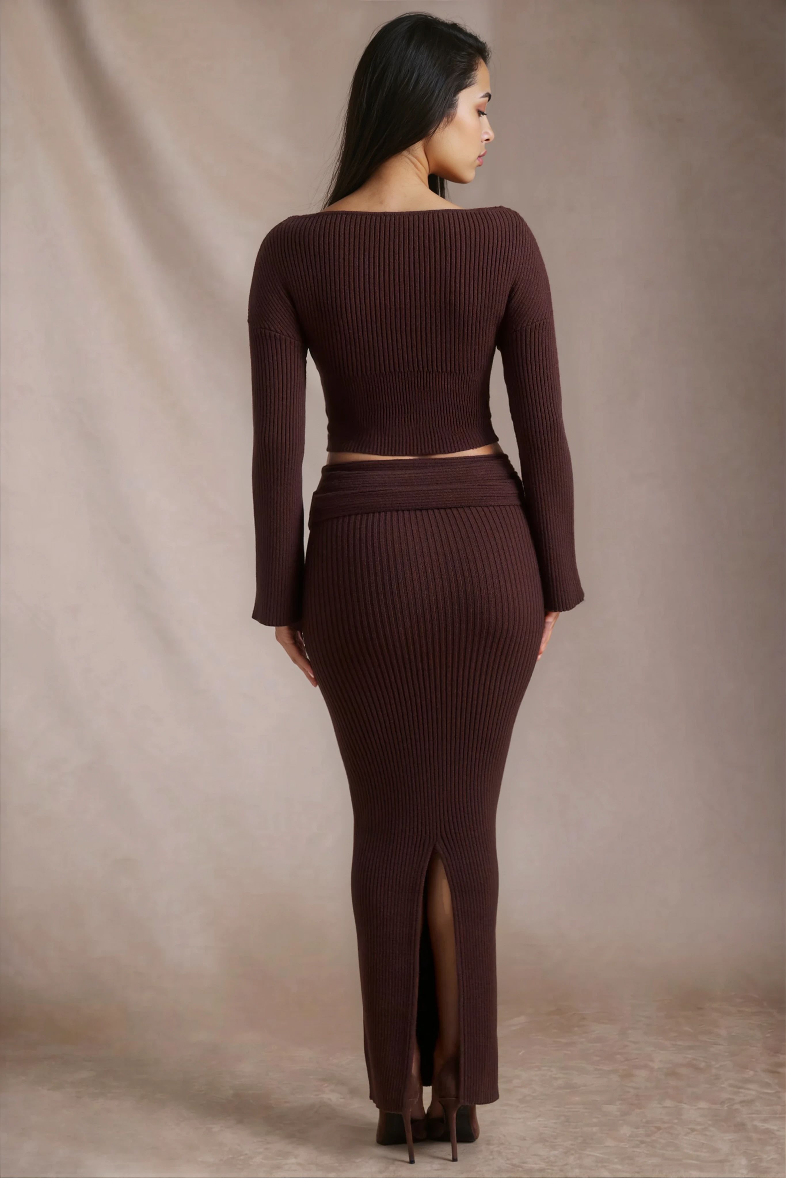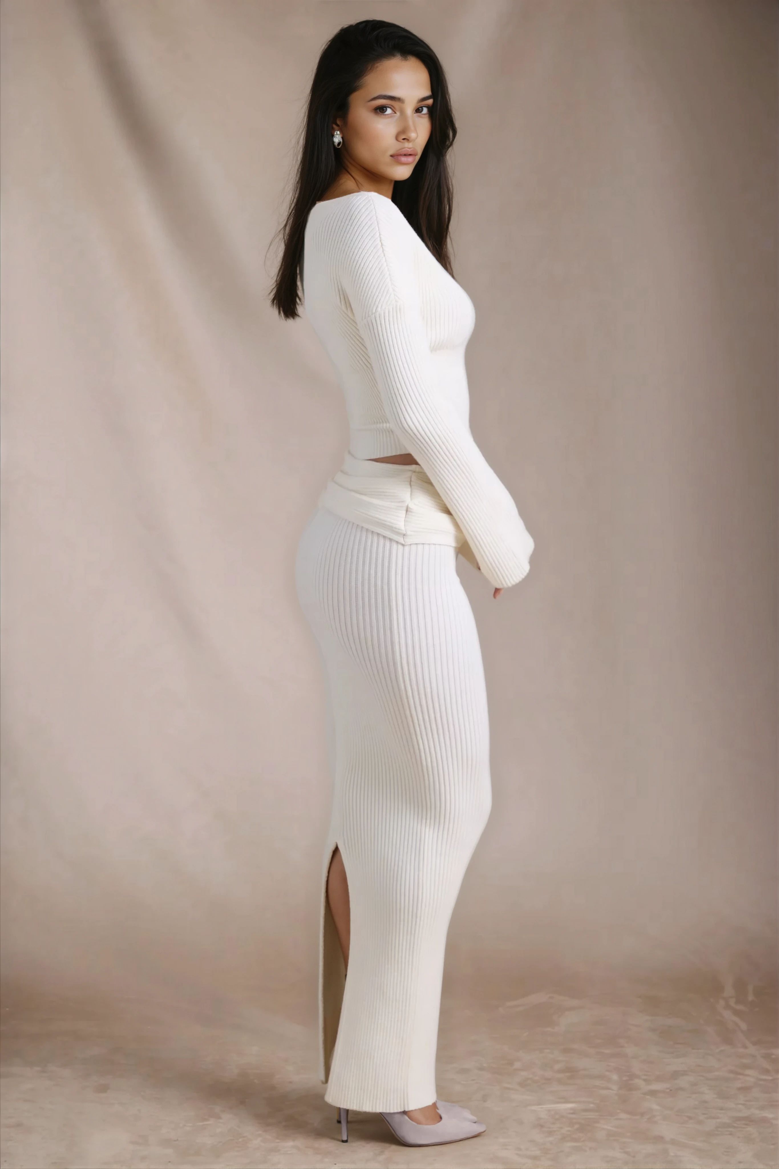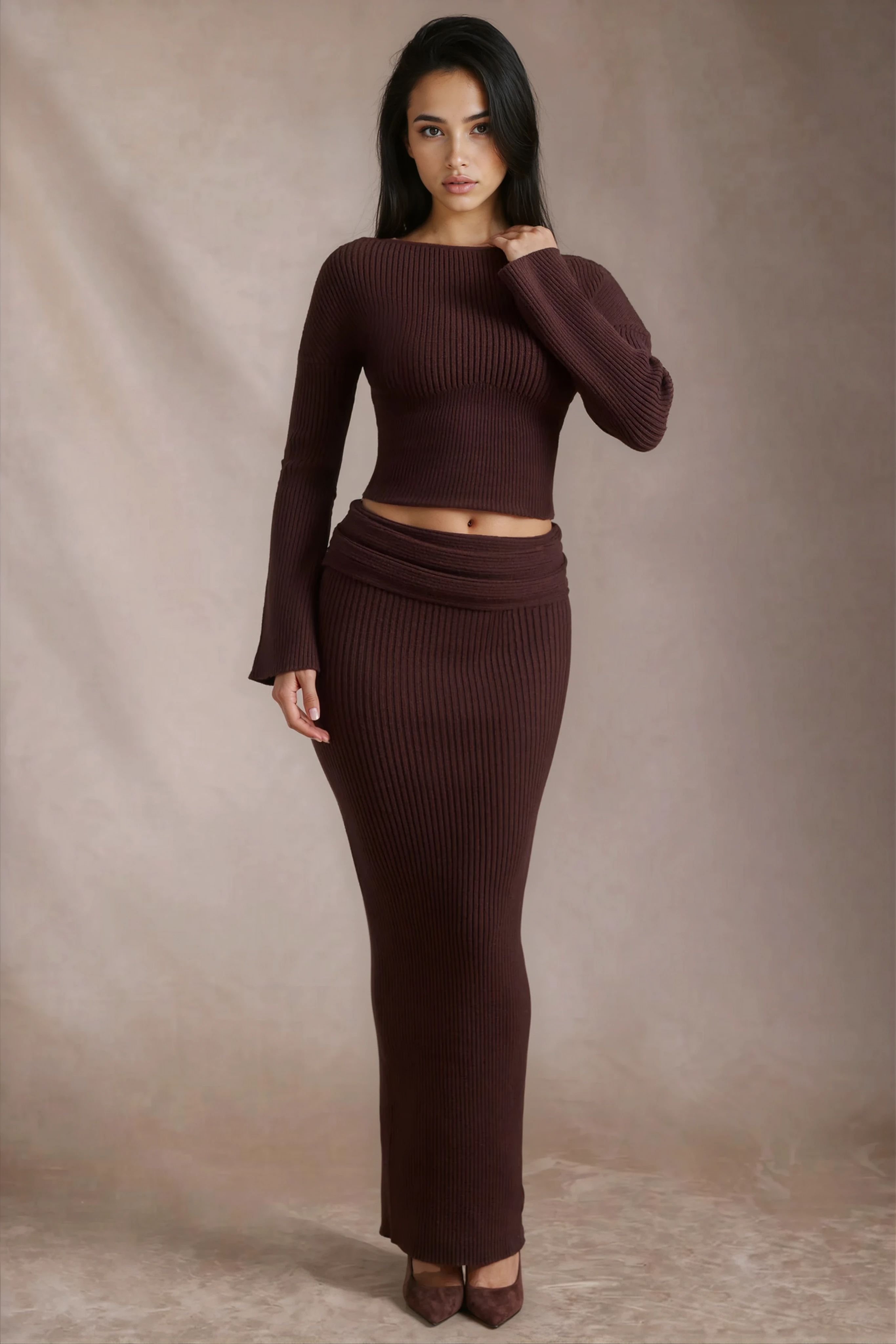 Ribbed-Knit Slash-Neck Top & Maxi Skirt Set