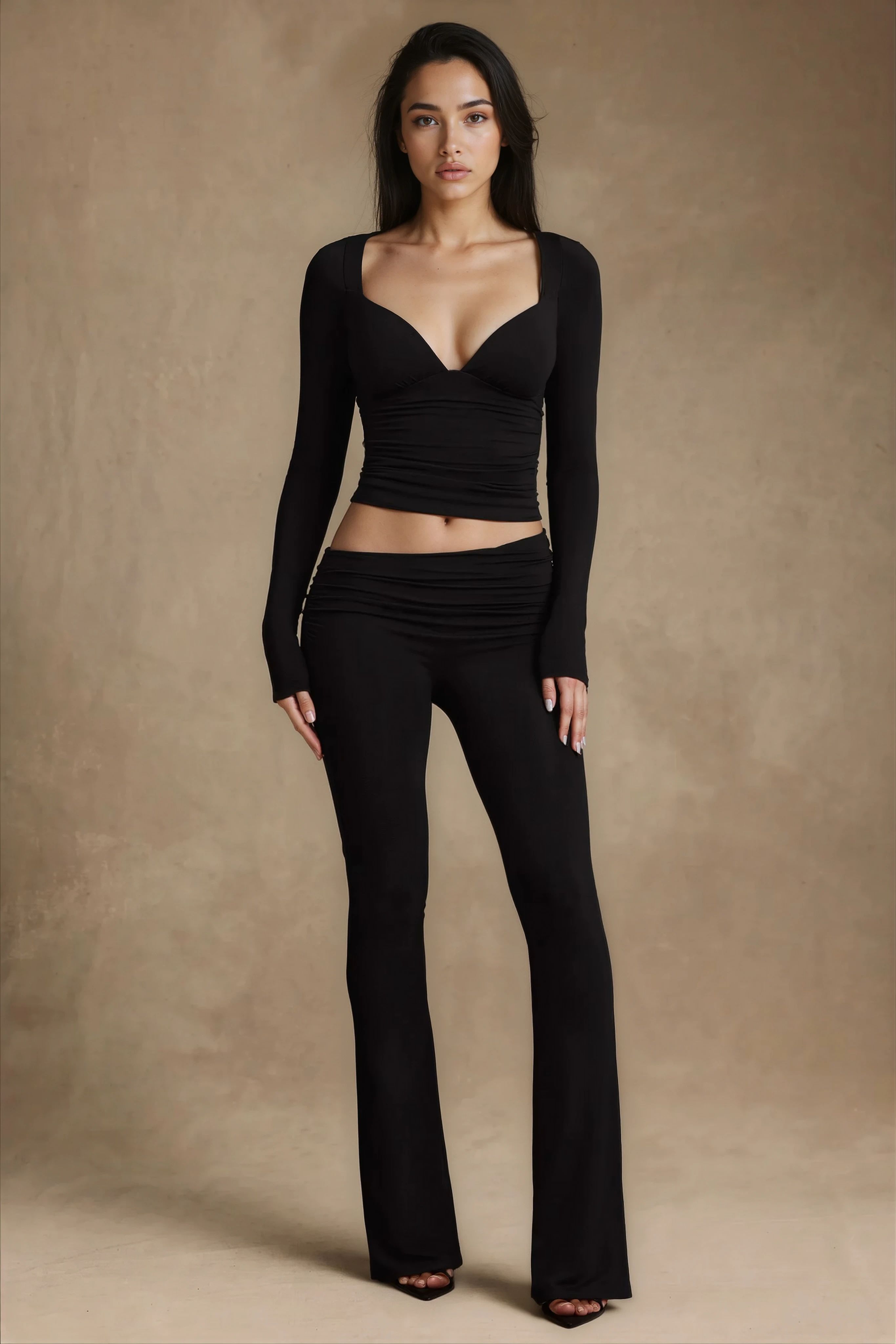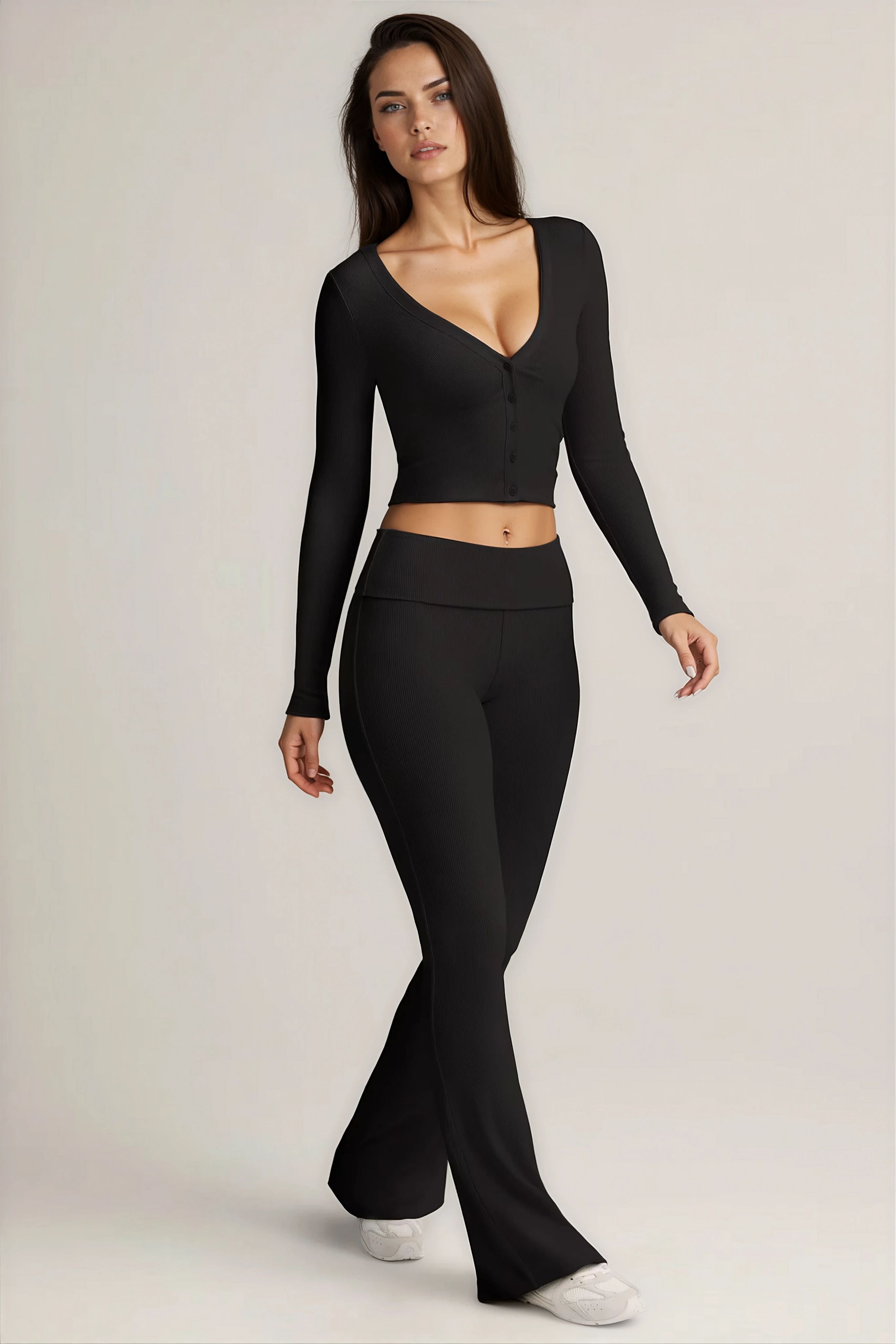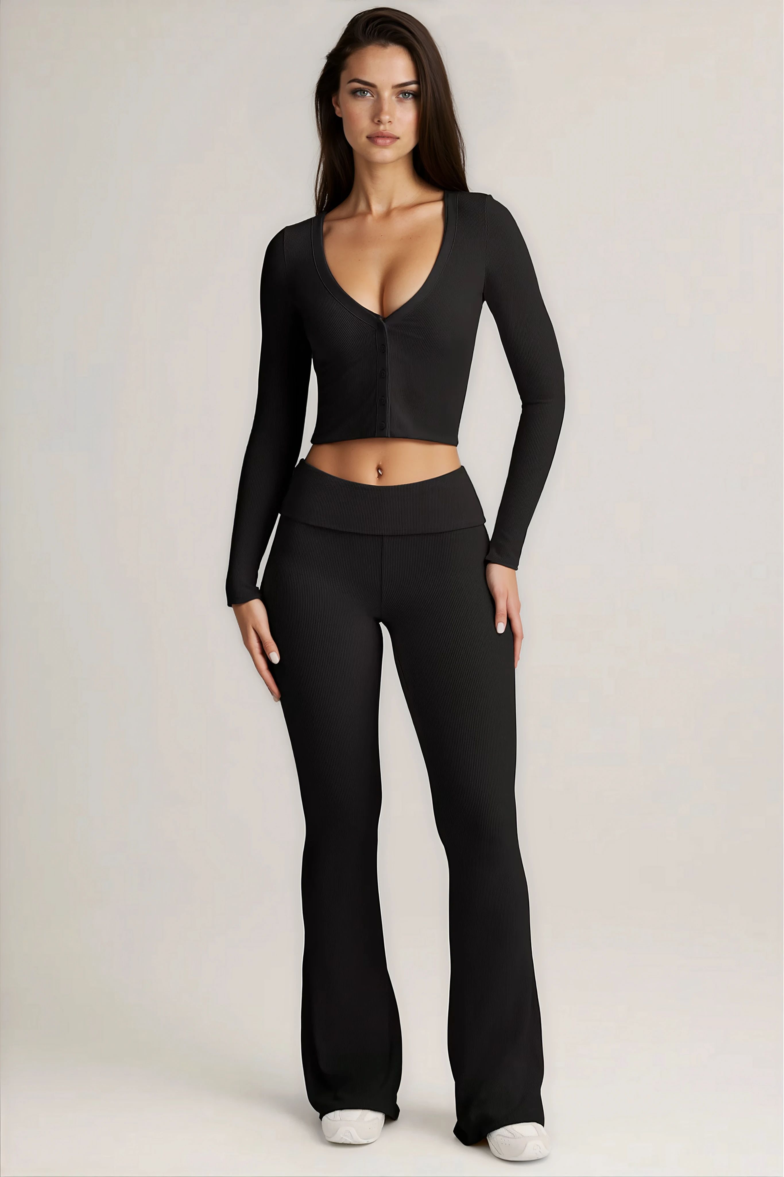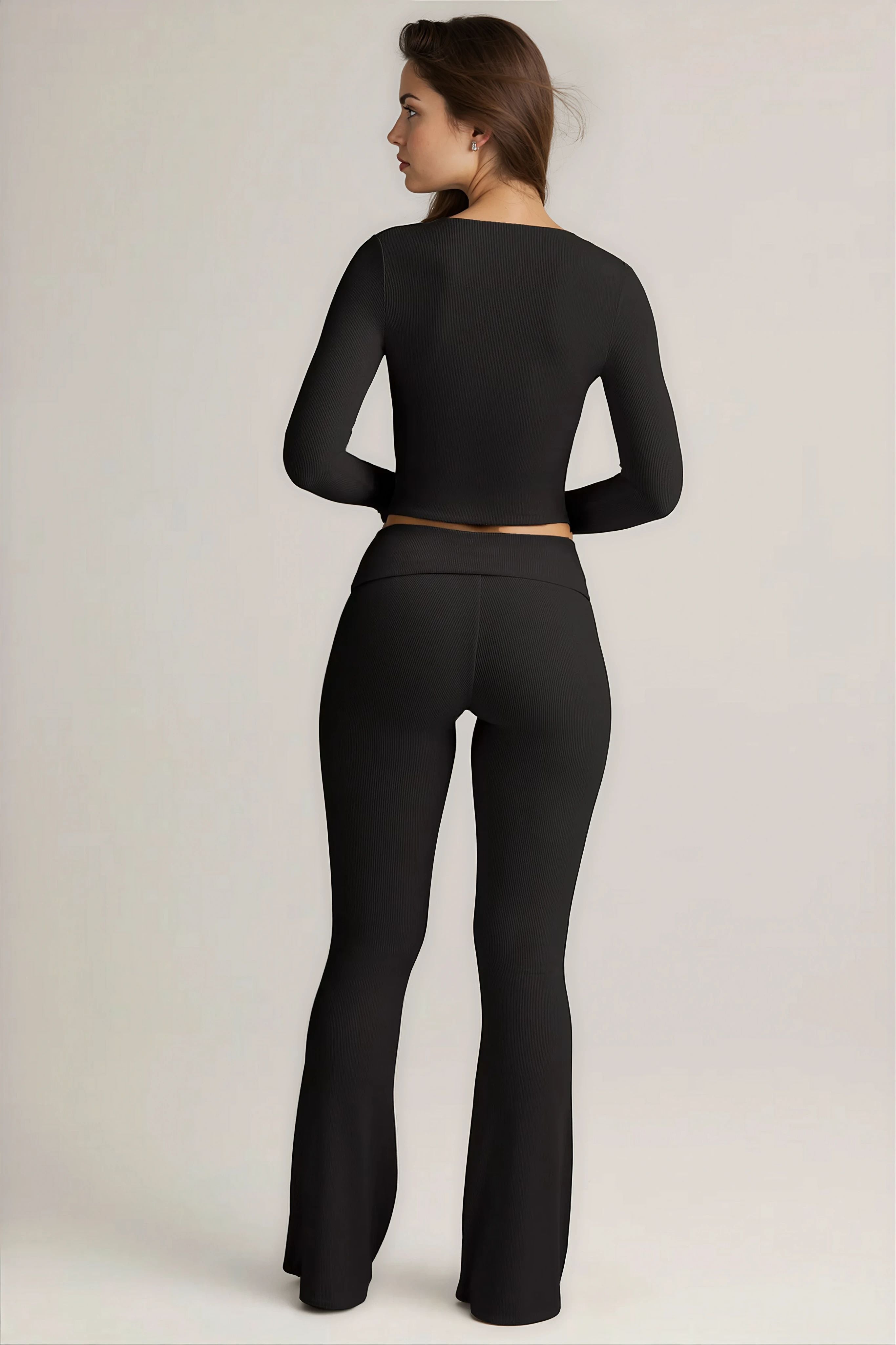 Ribbed-Knit Slash-Neck Top & Maxi Skirt Set