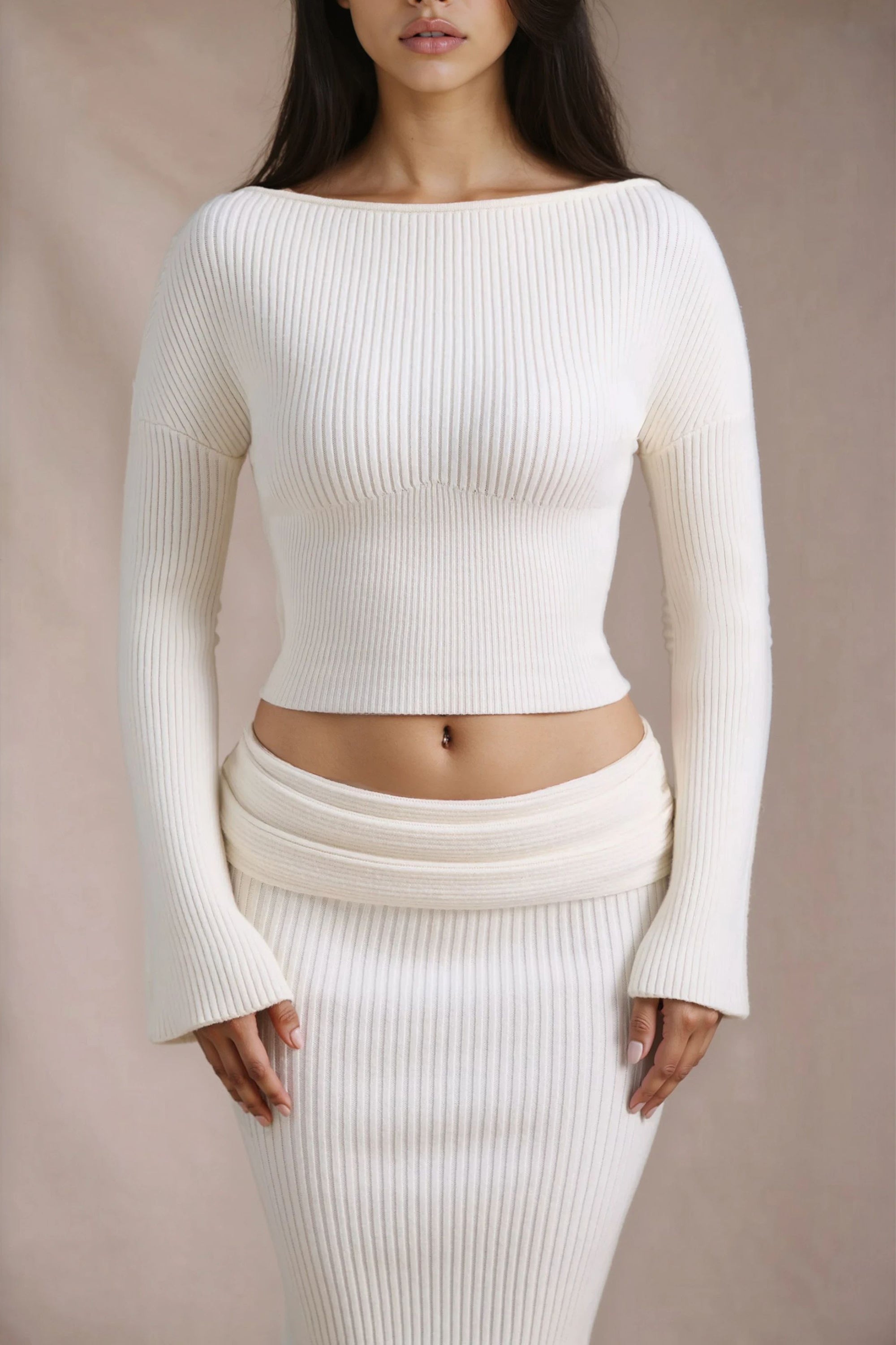 Ribbed-Knit Slash-Neck Top & Maxi Skirt Set