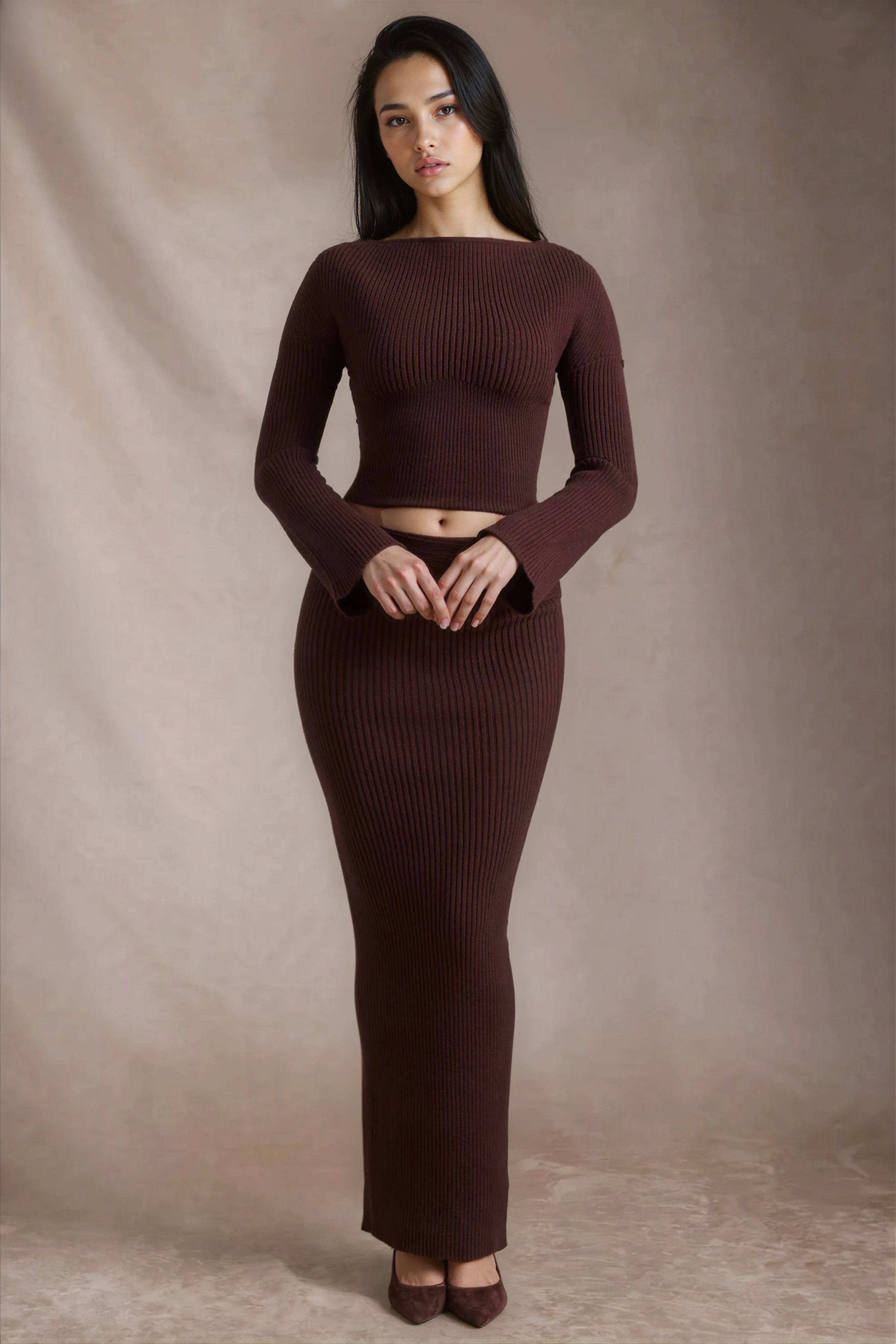 Ribbed-Knit Foldover Maxi Skirt